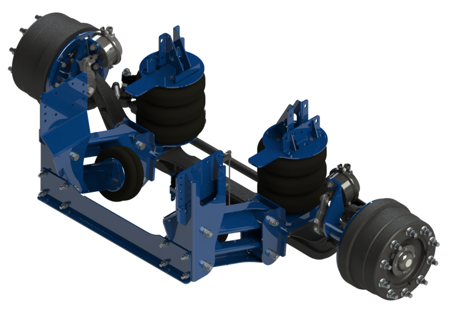 Suportes parafusados, permitem uma fácil instalação e sua montagem compacta garante maior espaço para componentes do veículo e acessórios da carroceria. Levante Integrado, permite erguer o eixo auxiliar com o veículo vazio ou parcialmente carregado, economizando pneus e combustível. Suspensão Pneumática, propicia conforto e melhor distribuição de carga. Sua patenteada geometria garante o auto-alinhamento do eixo sem necessidade de interferir com o sistema hidráulico do veículo.
