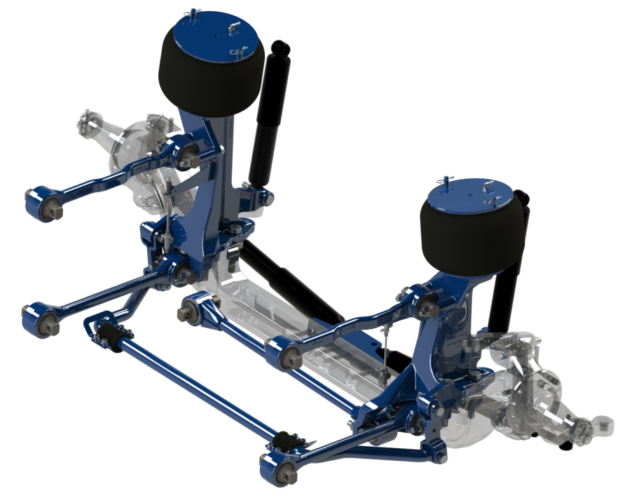 Solução robusta e versatilidade de aplicações. Sua geometria absorve a maior parte das torções causadas pelas irregularidades do pavimento, transmitindo uma experiência de conforto e estabilidade superiores. Com um projeto versátil, estas suspensões podem ser aplicadas a uma enorme gama de chassis.